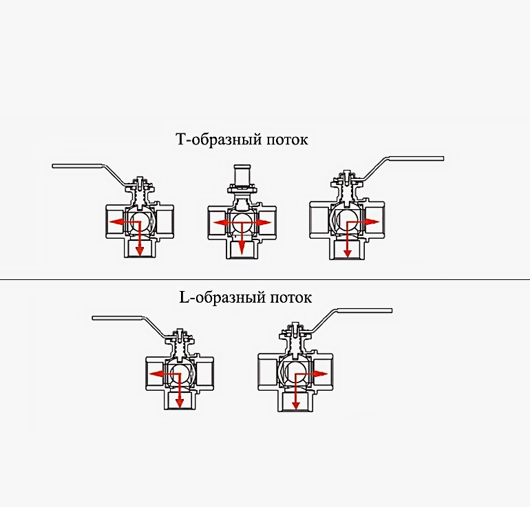 Типы кранов трехходовых (Т и L)
